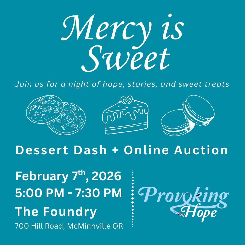 We are thrilled to invite you to the Provoking Hope 15th Annual Dessert Dash and Auction, a special evening dedicated to nurturing hope and fostering recovery. This year, we gather under the theme “Mercy is Sweet,” celebrating the grace that carries people through their hardest moments. Mercy shows up in many forms—sometimes as a kind word, sometimes as a second chance, and this year, as a delicious dessert. Join us for a joyful evening where generosity fuels impact through our Dessert Dash and online auction.